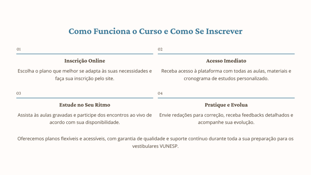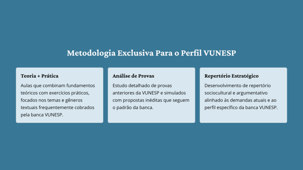 No curso de redação para a VUNESP, as aulas gravadas semanalmente ajudam a desenvolver redações de alto nível, permitindo flexibilidade nos estudos e revisões constantes.